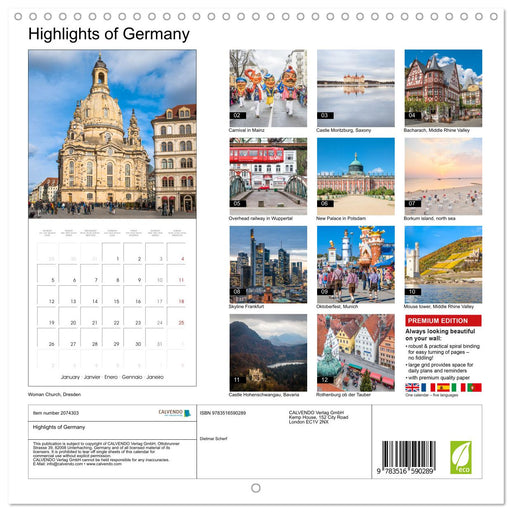 Afficher tous les détailsHighlights of Germany (CALVENDO Monthly Calendar 2026)