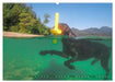 September: Deutsch Drahthaar Rettungsschwimmer in tiefgrünem See