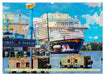 April: Blick auf das Wismarer Technologiezentrum und den Werfthafen mit dem Kreuzliner Disney Adventure