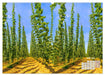 Juli: Hopfengarten mit erntereifen Blütenstand. Hopfenanbau gibt es hier schon seit dem 8. Jahrhundert.
