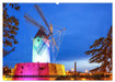 März: Beleuchtete altertümliche Windmühle im Süden Mallorcas