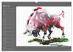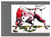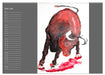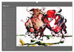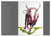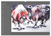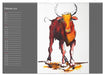 Stiere in kräftigen Farben, lavierte Tuschezeichnungen.