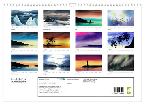 Afficher tous les détailsLandschaft in Aquarellfarbe (CALVENDO Wandkalender 2026)