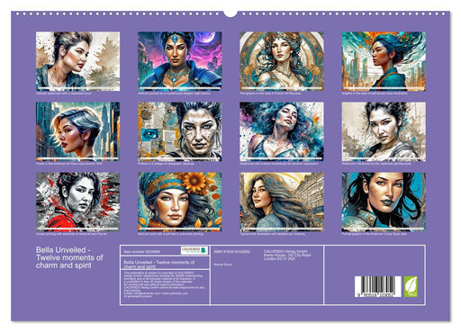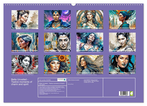 The diversity of graphic expression (Monthly calendar, 14 pages) Bella is an artificial figure, a muse created by artificial intelligence, who pre...
