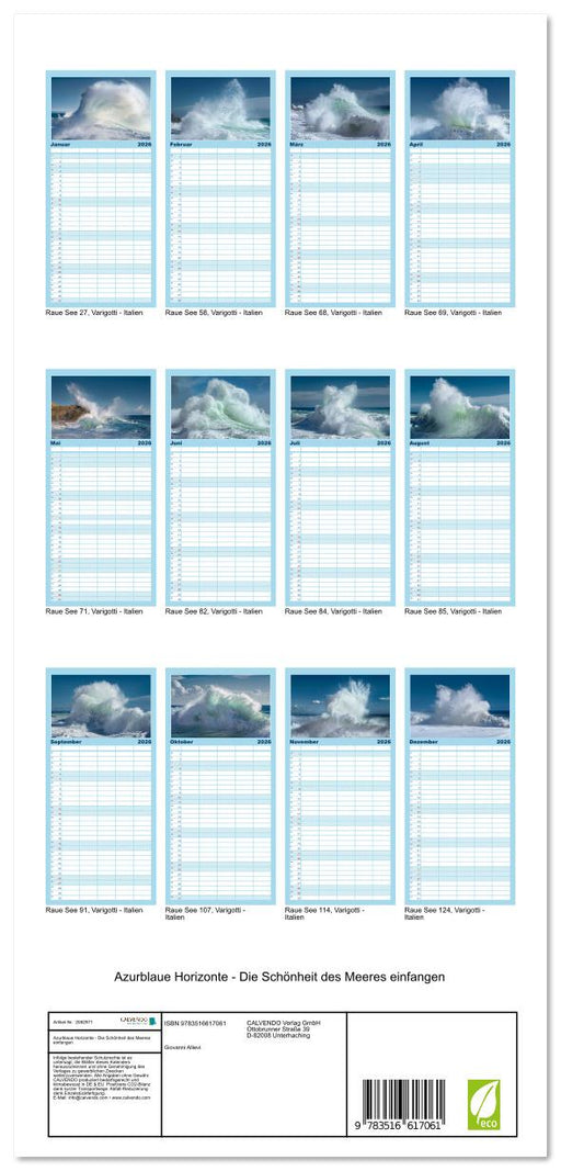 Azurblaue Horizonte - Die Schönheit des Meeres einfangen (CALVENDO Familienplaner 2026)