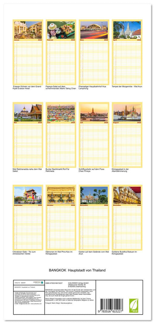 Afficher tous les détailsBANGKOK Hauptstadt von Thailand (CALVENDO Familienplaner 2026)