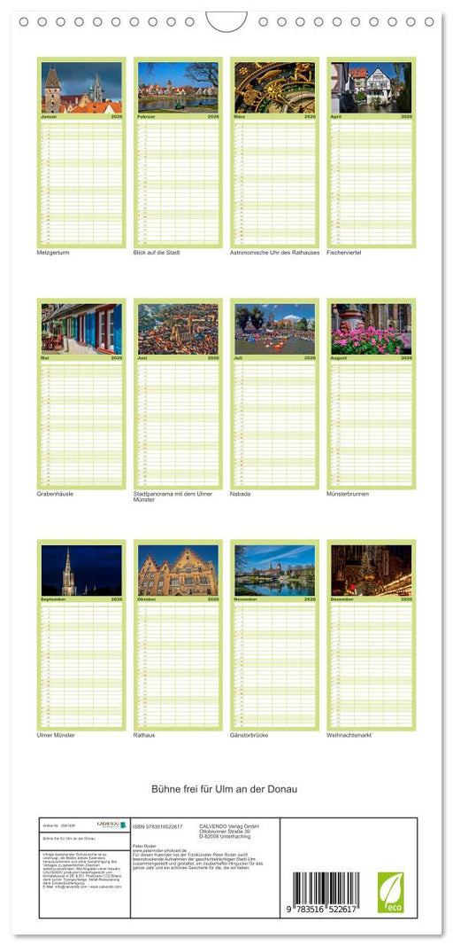 Afficher tous les détailsBühne frei für Ulm an der Donau (CALVENDO Familienplaner 2026)