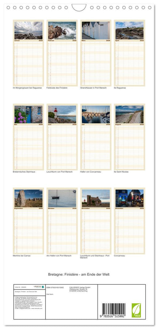 Afficher tous les détailsBretagne: Finistère - am Ende der Welt (CALVENDO Familienplaner 2026)