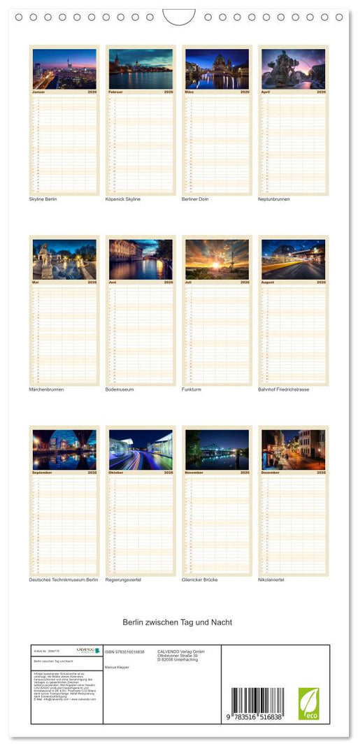 Afficher tous les détailsBerlin zwischen Tag und Nacht (CALVENDO Familienplaner 2026)