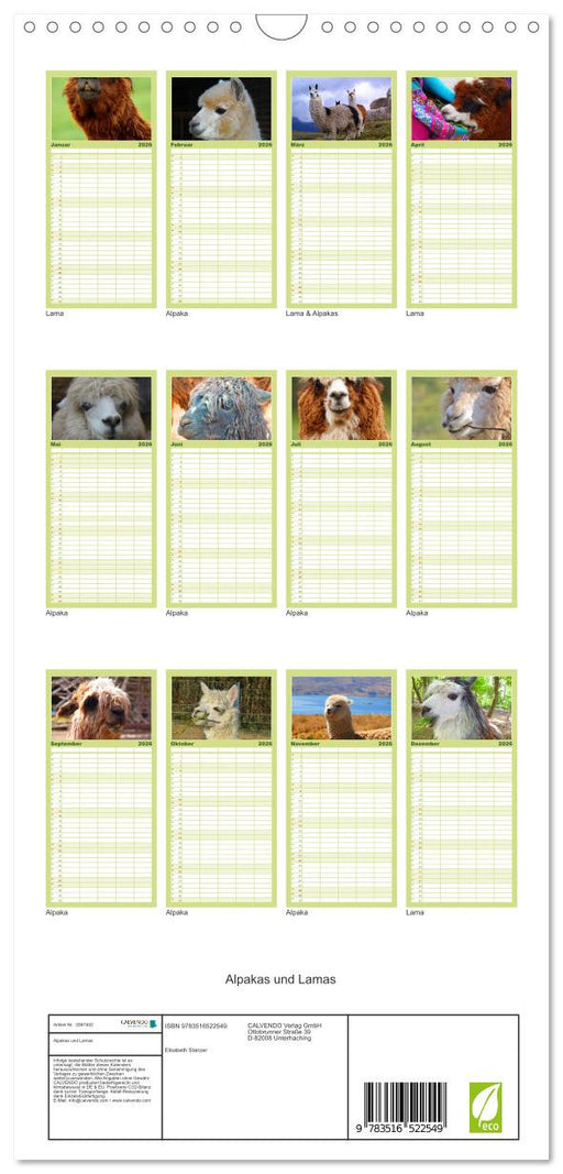 Afficher tous les détailsAlpakas und Lamas (CALVENDO Familienplaner 2026)