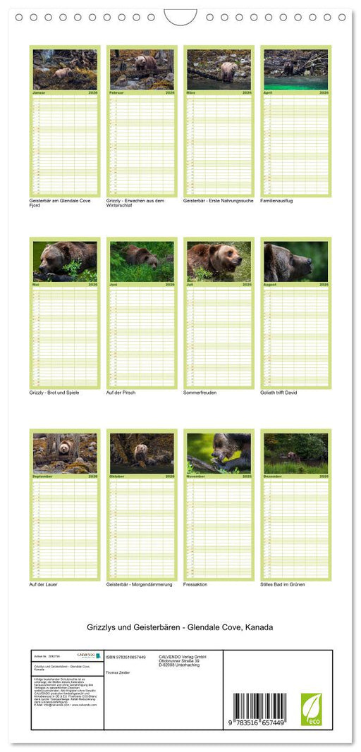 Afficher tous les détailsGrizzlys und Geisterbären - Glendale Cove, Kanada (CALVENDO Familienplaner 2026)