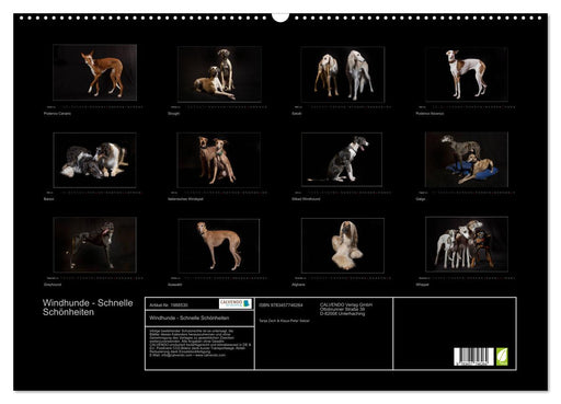 Überblick über diverse Windhundrassen, fotogrfaiert im Fotostudio und mal nicht auf der Rennbahn (Monatskalender, 14 Seiten) Windhunde - Schnelle ...