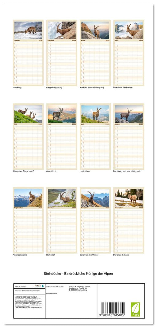 Afficher tous les détailsSteinböcke - Eindrückliche Könige der Alpen (CALVENDO Familienplaner 2026)