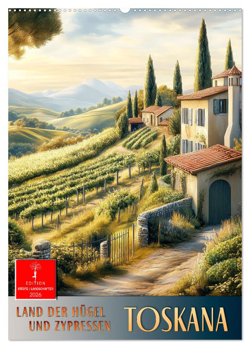 Afficher tous les détailsToskana - Land der Hügel und Zypressen (CALVENDO Wandkalender 2026)