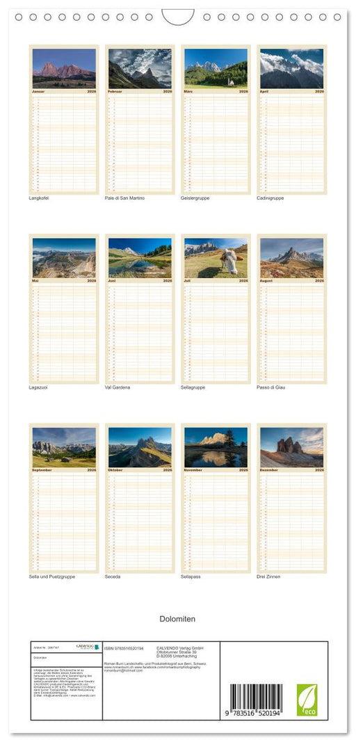 Afficher tous les détailsDolomiten (CALVENDO Familienplaner 2026)