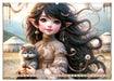 September: Elfenmädchen mit Katze