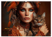 Oktober: Frau im eleganten goldenen Boho Style mit einer rot getigerten Katze