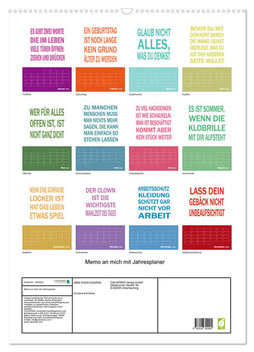Mit witzigen Sprüchen fröhlich planen (Monatskalender, 14 Seiten) Nachdem "Memo an mich" bereits seit eingen Wochen auf dem Markt ist, sei hier mi...