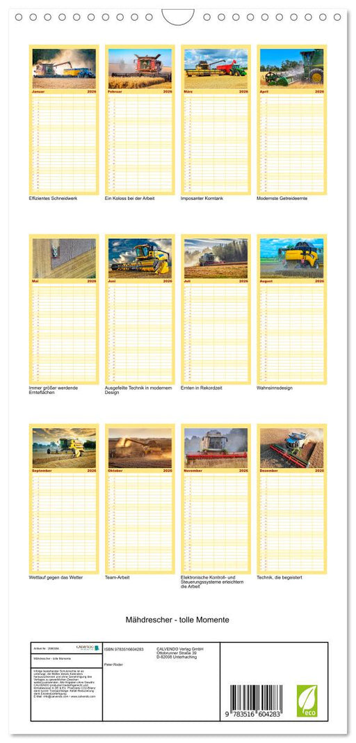 Afficher tous les détailsMähdrescher - tolle Momente (CALVENDO Familienplaner 2026)