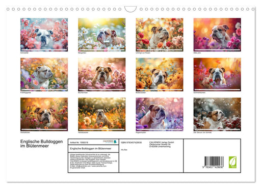 Afficher tous les détailsEnglische Bulldoggen im Blütenmeer (CALVENDO Premium Wandkalender 2026)