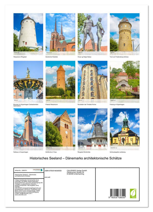Ein Kalender mit zwölf historischen Bauwerken der Insel Seeland. (Monatskalender, 14 Seiten) Ein kunstvoll gestalteter Kalender, der die bedeutend...