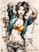 Das Bild von Meredith vermittelt auf faszinierende Weise nicht nur die Ansicht einer schönen Frau, sondern auch die Spannung zwischen den präzisen Linien der Tuschefeder und den leichten, lässig hingeworfenen Flächen der Wasserfarbe. Mithilfe von künstlicher Intelligenz ist dieser Effekt zustande gekommen.
