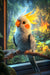 Premium Textil-Leinwand Tanz aufm Ast - Nymphensittich vor Fernseher