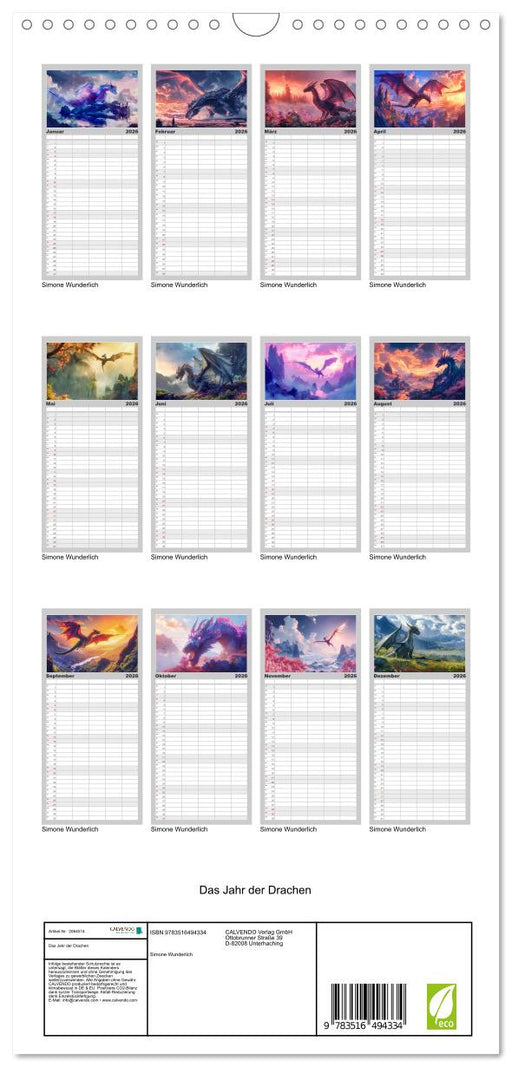 Afficher tous les détailsDas Jahr der Drachen (CALVENDO Familienplaner 2026)