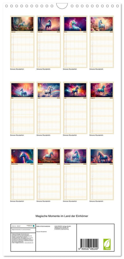 Afficher tous les détailsMagische Momente im Land der Einhörner (CALVENDO Familienplaner 2026)