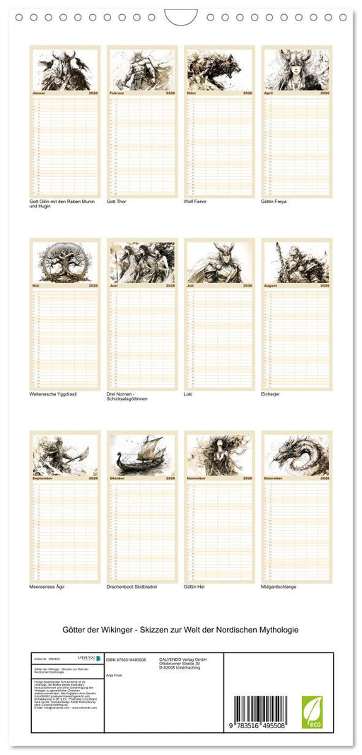 Afficher tous les détailsGötter der Wikinger - Skizzen zur Welt der Nordischen Mythologie (CALVENDO Familienplaner 2026)