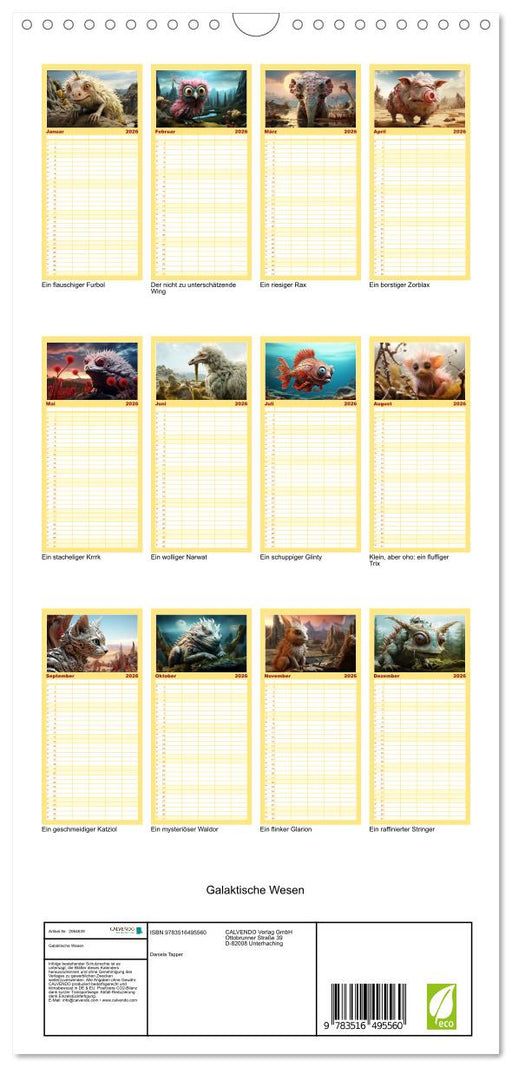 Afficher tous les détailsGalaktische Wesen (CALVENDO Familienplaner 2026)