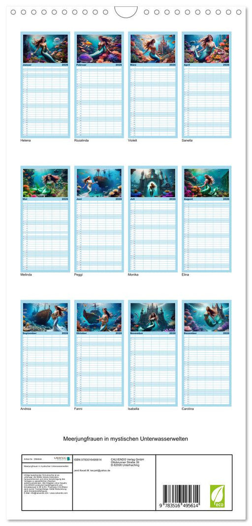 Afficher tous les détailsMeerjungfrauen in mystischen Unterwasserwelten (CALVENDO Familienplaner 2026)