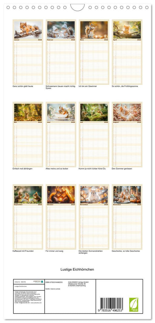 Afficher tous les détailsLustige Eichhörnchen (CALVENDO Familienplaner 2026)