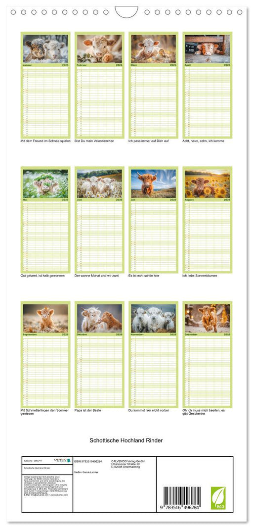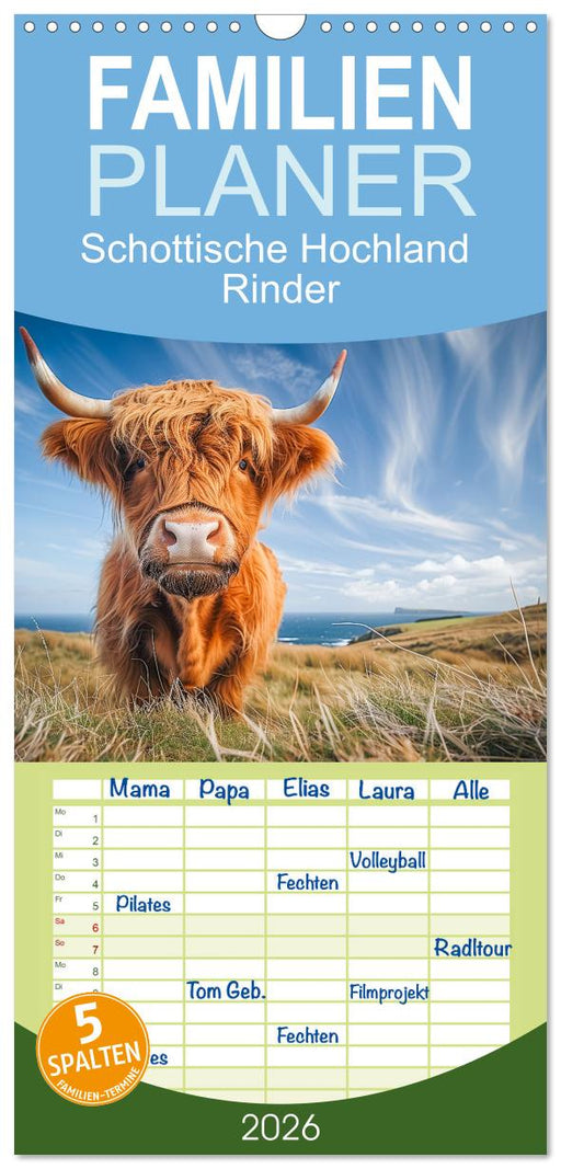 Afficher tous les détailsSchottische Hochland Rinder (CALVENDO Familienplaner 2026)