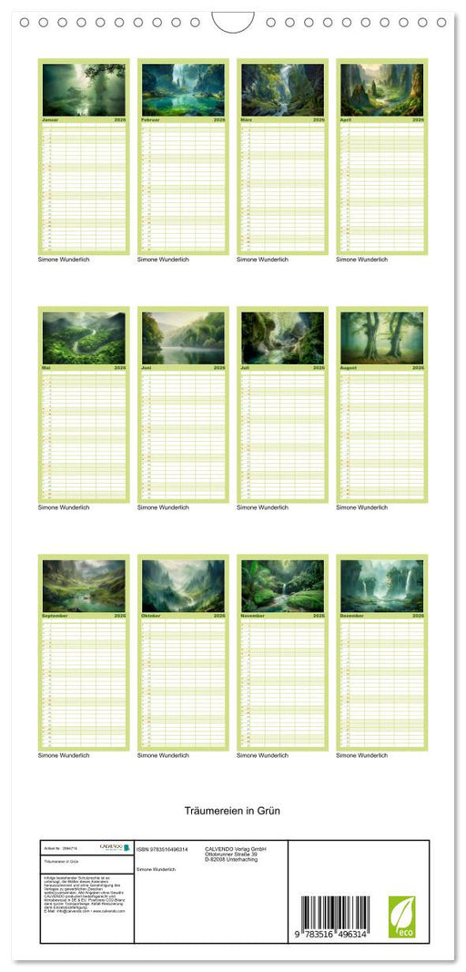 Afficher tous les détailsTräumereien in Grün (CALVENDO Familienplaner 2026)