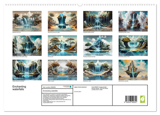 Unique enchanted waterfalls, generated with AI. (Monthly calendar, 14 pages) This unique calendar contains breathtaking images of imaginary waterf...