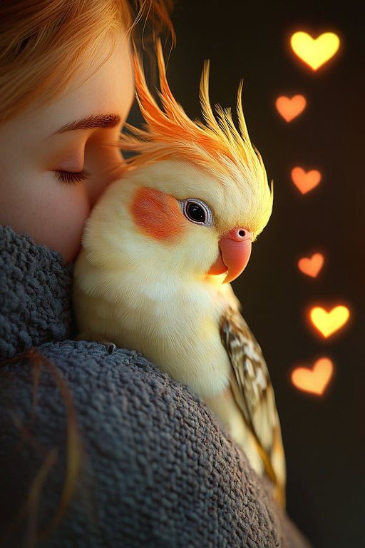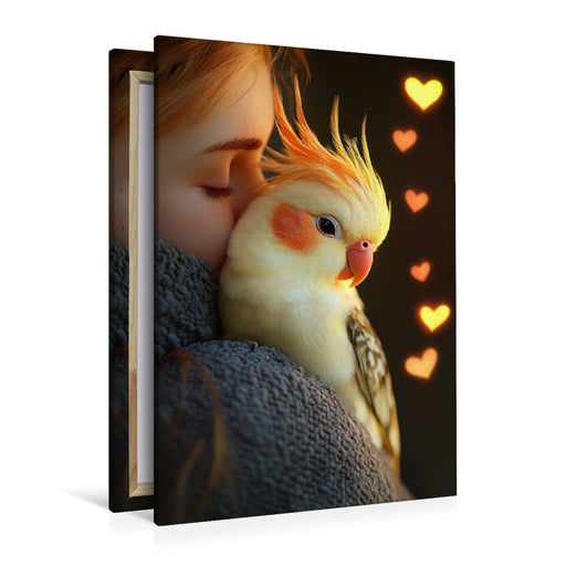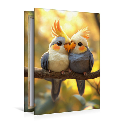 Afficher tous les détailsPremium Textil-Leinwand Laut, aber lieb - Nymphensittich kuschelt