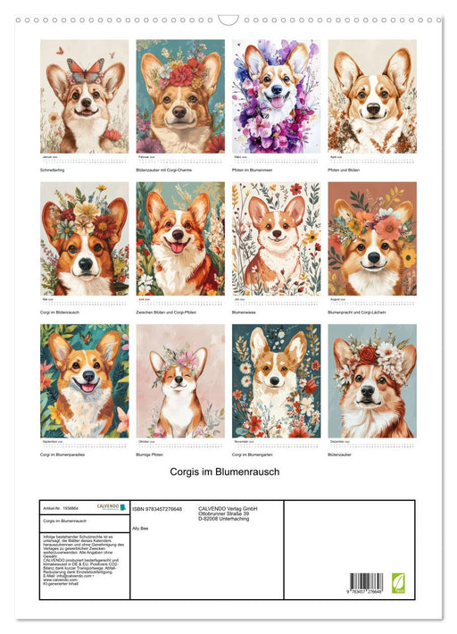 Afficher tous les détailsCorgis im Blumenrausch (CALVENDO Premium Wandkalender 2026)