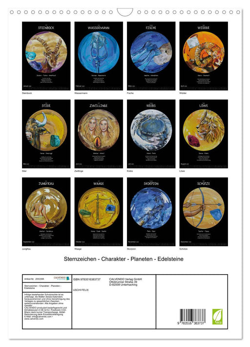 Ausdrucksstarke Sternzeichen mit Charakter (Monatskalender, 14 Seiten) Mit diesem Sternzeichenkalender hat die Künstlerin Uschi Felix etwas ganz b...