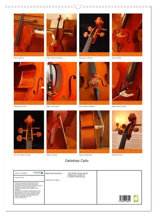 Das Violoncello in schönen Detailaufnahmen. (Monatskalender, 14 Seiten) Ein Kalender mit Farbfotografien von einem Cello, einem schönen Instrument...