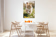 Premium Textil-Leinwand Die Maine Coon Katze läuft voller Energie durch eine blühende Frühlingswiese.