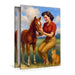 Premium Textil-Leinwand Frau der 50er Jahre besucht Fohlen