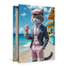 Premium Textil-Leinwand Kater mit Eis im Sommeranzug – stilvolles Katzenmotiv am Strand