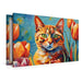 Premium Textil-Leinwand Katze gemalt nach van Gogh mit Tulpen