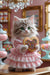 Premium Textil-Leinwand Katzenbaby mit Rüschenkleid im Bonbonparadies