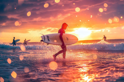 Die Faszination des Wellenreitens in spektakulären Bildern ein, Surferinnen und Surfer, die sich mit beeindruckender Eleganz in riesige Wellen st...