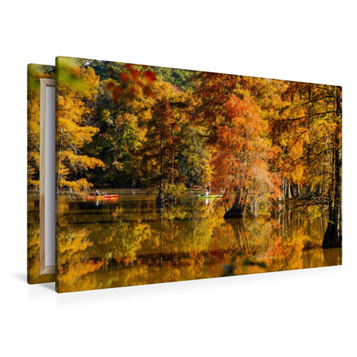Afficher tous les détailsPremium Textil-Leinwand Kanufahrer und Sumpfzypressen im Trap Pond State Park – Delaware