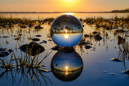 Spiegelung am Chiemsee Eine scheinbar auf dem Kopf stehende Welt, die im inneren einer Glaskugel gefangen ist. Durch die Lichtbrechung in der Kuge...