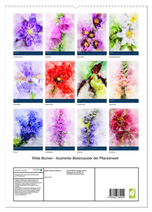 Afficher tous les détailsWilde Blumen - Illustrierter Blütenzauber der Pflanzenwelt (CALVENDO Wandkalender 2026)