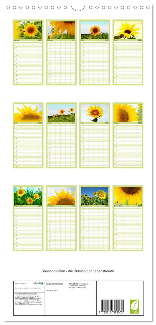 Afficher tous les détailsSonnenblumen - die Blumen der Lebensfreude (CALVENDO Familienplaner 2026)